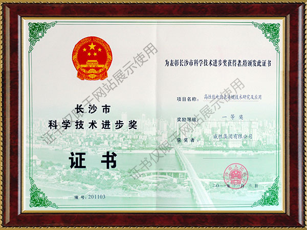 长沙市科学技术进步奖(高性能电能表关键技术研究及应用一等奖)