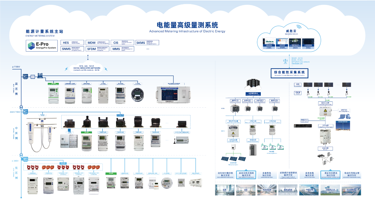 本次展出的“电能量高级量测系统”,展示了公司在集中式以及分布式系统主站下全面的产品布局。涵盖了专业的系统主站解决方案、电网高中低压侧各类计量产品、非电场景中综合能效采集系统及产品等,不仅覆盖了产、输、配、用全过程各环节,同时也能提供构建自动计量系统的各类数据通信及处理设备,为用户提供完整的涵盖数据分析、处理、计费的应用软件系统。
